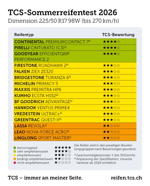 «Der Teufel liegt im Detail» könnte man zum aktuellen Sommerreifentest sagen. Dabei zeigt sich, wie relevant die Ausgewogenheit eine Reifens ist. Nicht umsonst, werden die Produkte in 15 verschiedenen Testkriterien bewertet, welche in die Hauptbereiche «Fahrsicherheit» und «Umweltbilanz» gegliedert sind.