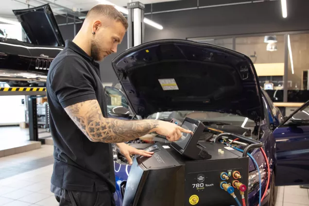 Come altre funzioni del veicolo, anche l'impianto di climatizzazione deve essere sottoposto a regolare manutenzione. Ogni anno un circuito di climatizzazione perde tra il 5 e il 10% del suo refrigerante. Un riempimento insufficiente di refrigerante riduce la potenza di raffreddamento dell'impianto di climatizzazione e provoca un sovraccarico del compressore. Il circuito di climatizzazione comprende anche diverse parti soggette a usura (filtro abitacolo, bottiglie essiccanti) che devono essere sostituite regolarmente. Infine, l'evaporatore e i condotti di ventilazione possono essere colpiti da muffe, batteri e acari. Ciò può non solo causare odori sgradevoli nell'abitacolo, ma anche provocare allergie.